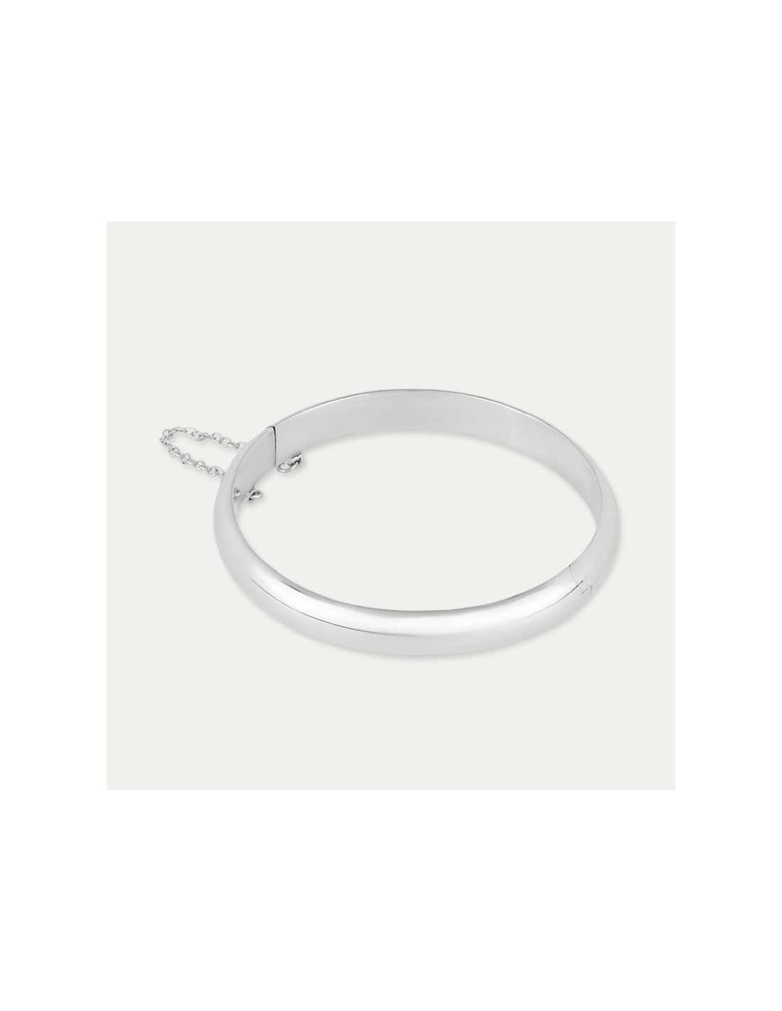 Pulsera tipo media caña fabricada en Plata de Primera Ley con acabado en brillo. Un complemento ideal para lucir este verano.