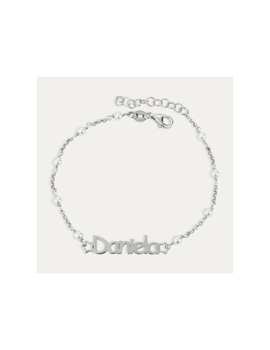 Pulsera de Plata 925 mlm con Nombre Personalizado Y Mini Perlas