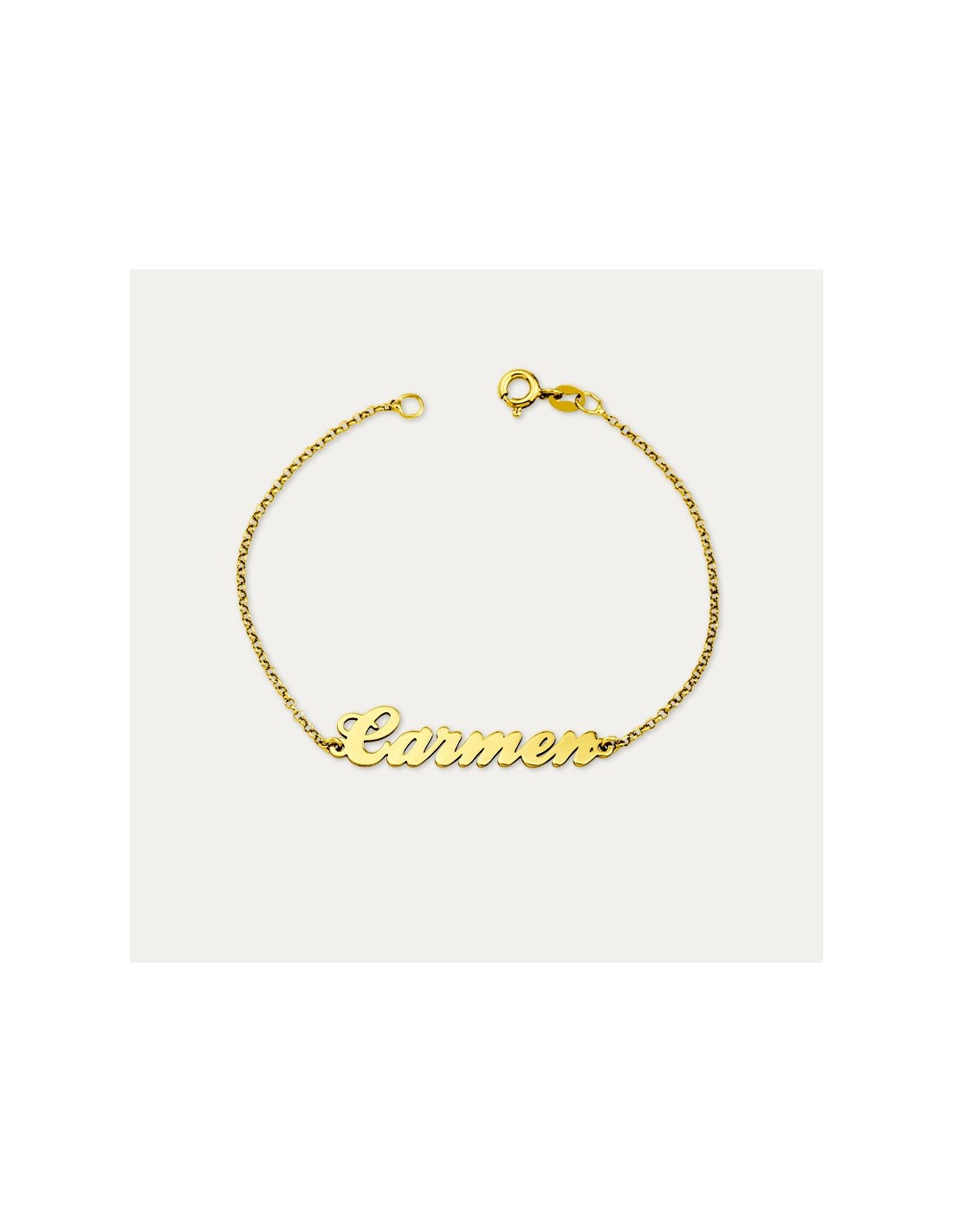 Pulsera personalizada con nombre en Plata dorada Primera Ley con cadena tipo rolo.