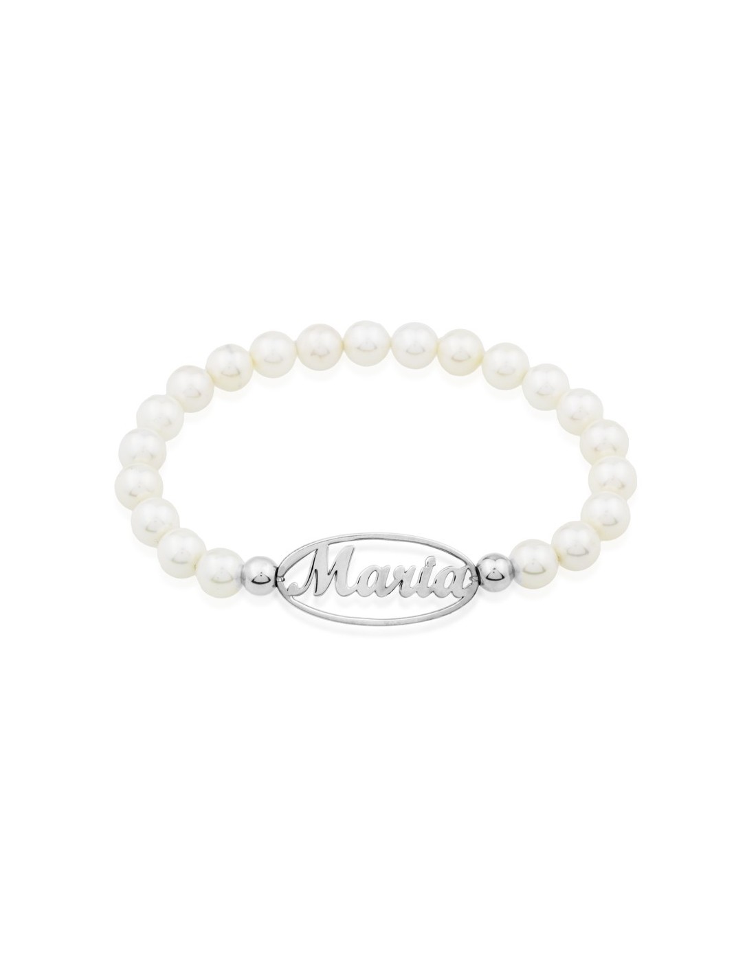 Pulsera extensible de perlas para personalizar con nombre en Plata de 925 milésimas.