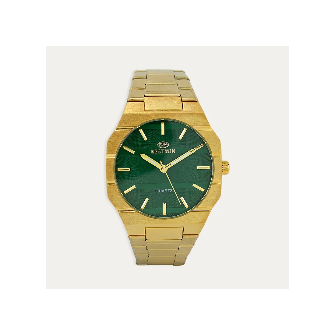 Reloj de acero dorado con esfera en color verde. Una pieza muy especial que transmite lujo y exclusividad.