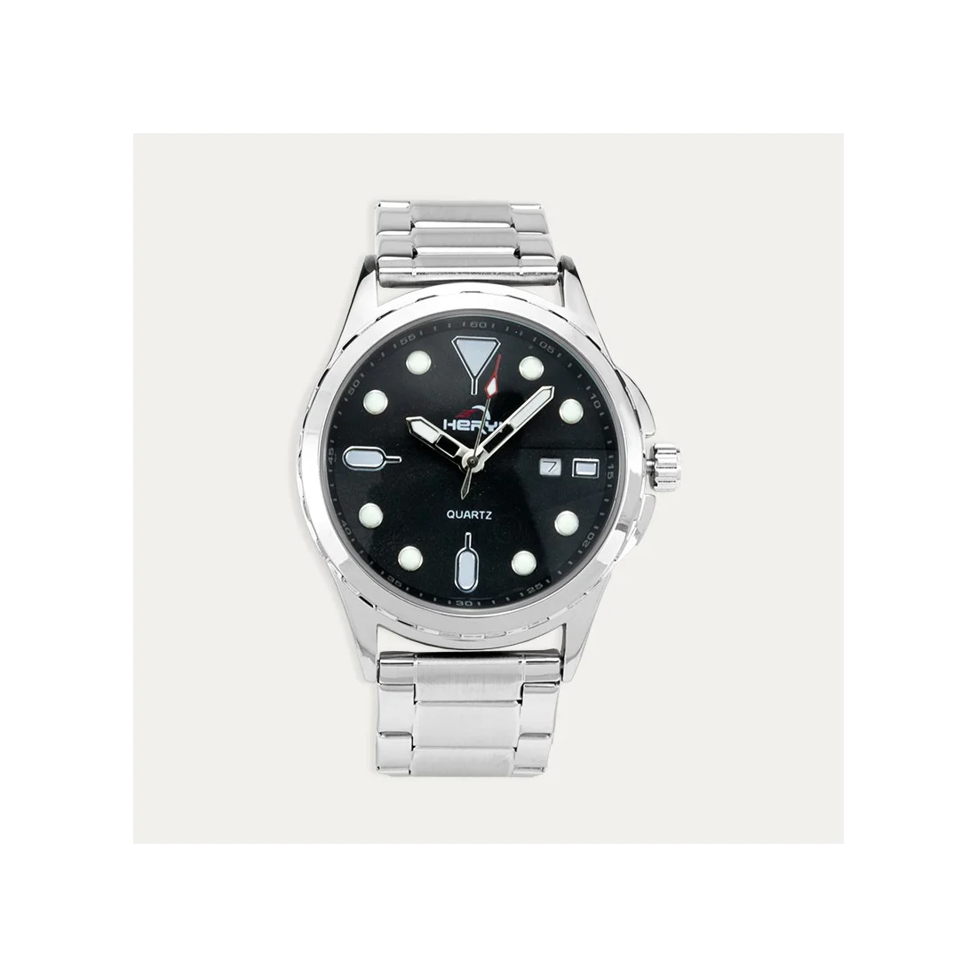 Reloj con esfera en color negro y calendario incluido. Fabricado en acero, resistente y elegante para tus mejores ocasiones.