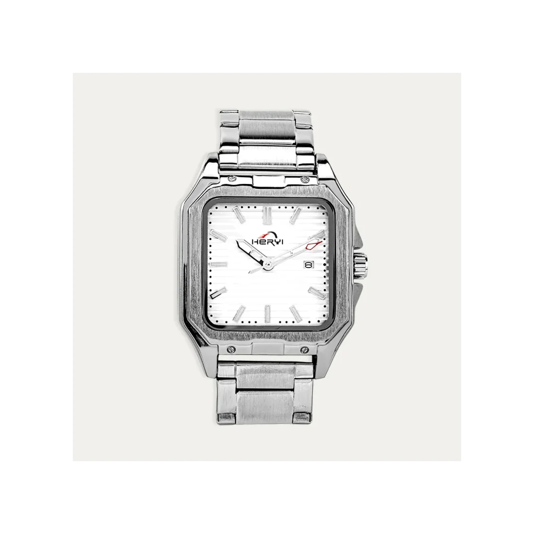 Reloj de Acero para Hombre Analógico Esfera Cuadrada Blanco Heryi