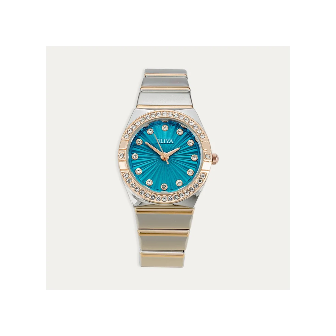 Reloj de acero bicolor con esfera en color azul zafiro. Esta formado por pequeñas circonitas.