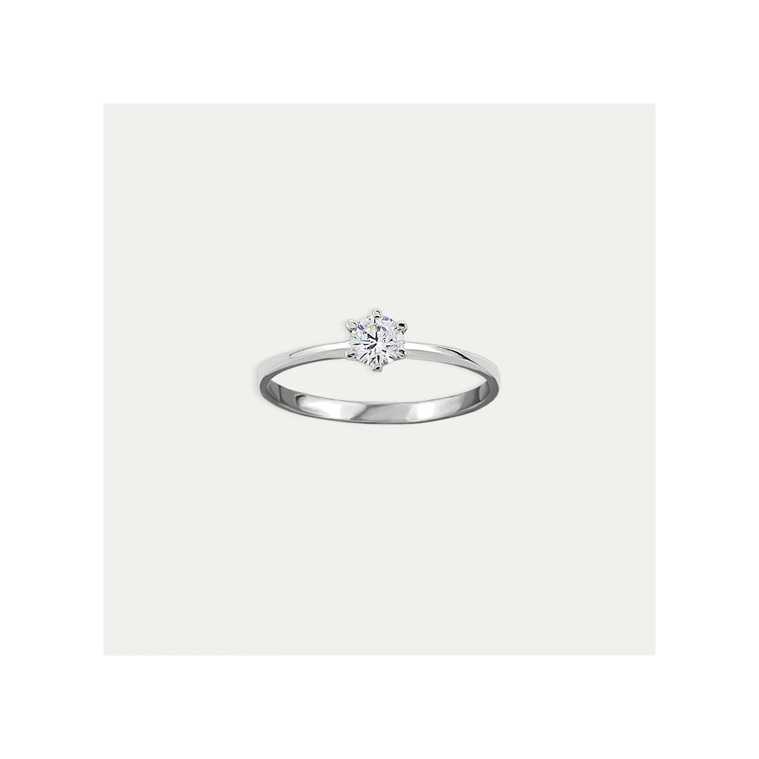 Anillo Solitario en Oro 18k Blanco de Seis Garras con Circonita Andros